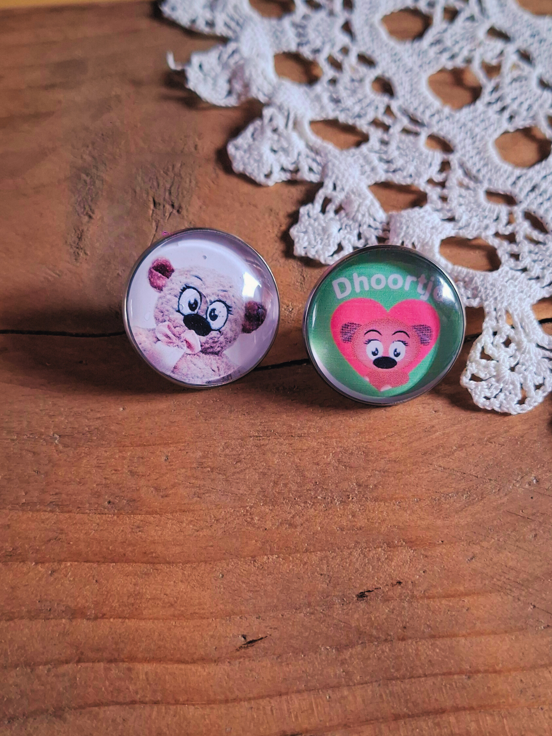 Laat je liefde voor Dhoortje zien! Deze set van twee pins is perfect om je tas, jas of rugzak mee op te fleuren. De set bevat één pin met een schattige foto van Dhoortje en één pin met het iconische Dhoortje-logo. Met een doorsnee van 25 mm zijn ze precies groot genoeg om op te vallen, maar subtiel genoeg voor dagelijks gebruik. Leuk om cadeau te doen of jezelf mee te verwennen!